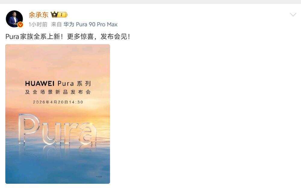 4月10日,华为终端官微正式宣布,华为Pura系列及全场景新品发布会将于4月20日14:30在广州举行。华为常务董事、终端BG董事长余承东同步在社交媒体发文:“Pura家族全系上新!更多惊喜,发布会见!”华为终端BG首席执行官何刚也透露,Pura家族不只Pura 90系列专业在线股票配资交易平台,“超超超多全场景新品”值得期待。